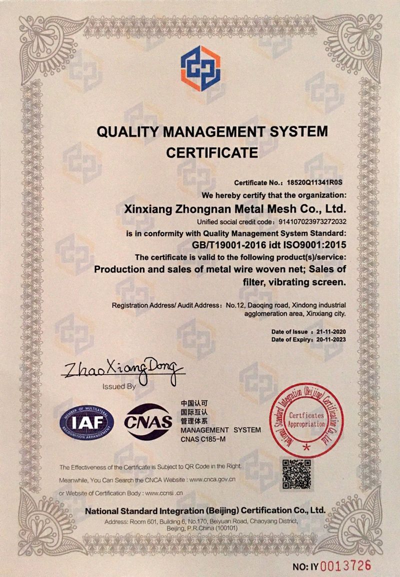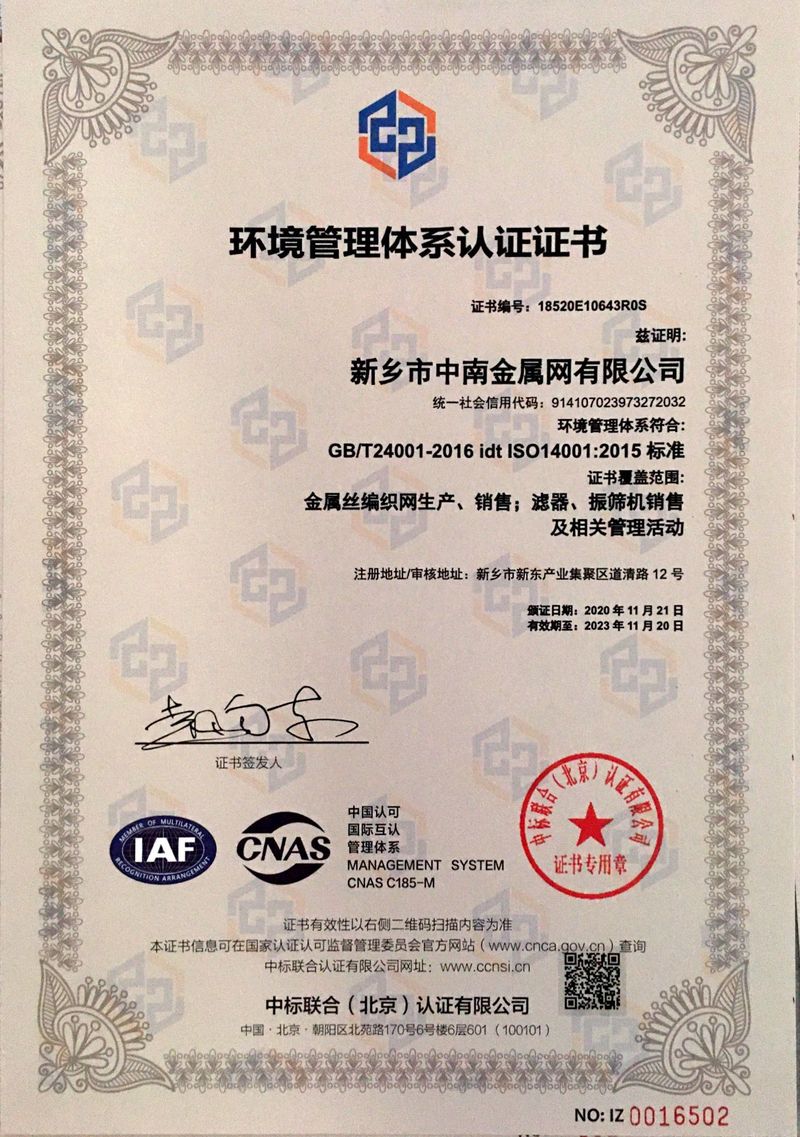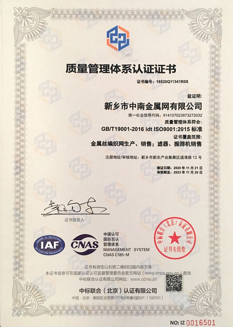 新鄉(xiāng)市中南金屬網有限公司成立于1999 年,公司設在河南省新鄉(xiāng)市。在過去的十幾年來,我們堅持以嚴格的管理措施、雄厚的技術力量、良好的工藝設施,質量上乘、信譽為上為原則,把樹立良好的企業(yè)形象為工作宗旨,歷經市場的嚴峻考驗并贏得廣大用戶的一致好評。金屬絲網編織結構形式有平紋和斜紋兩種方法,嚴格按照航空軍品標準HB1862—93和標準GB/T5330—2003標準,并等效采用國際標準ISO9044—90標準組織生產。
